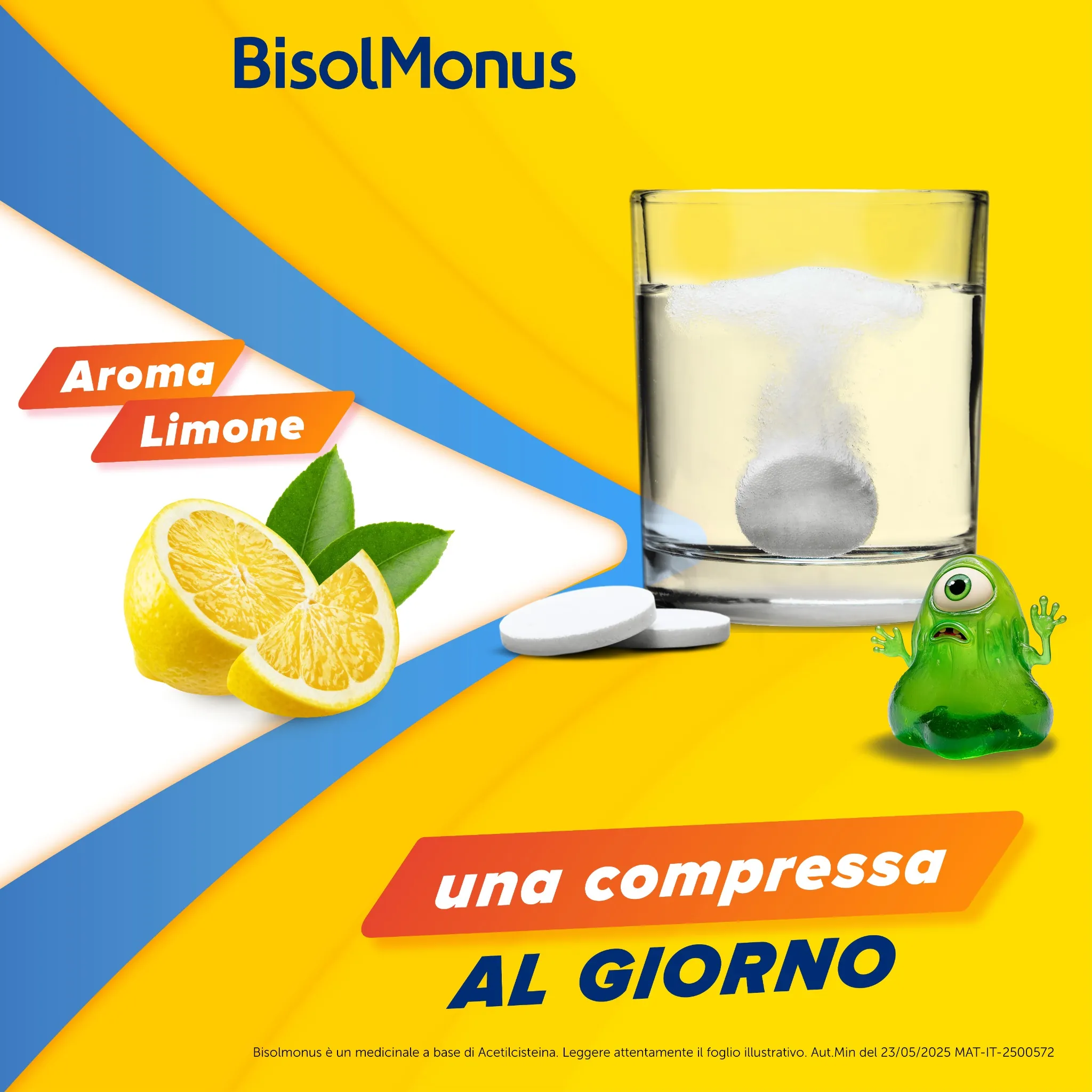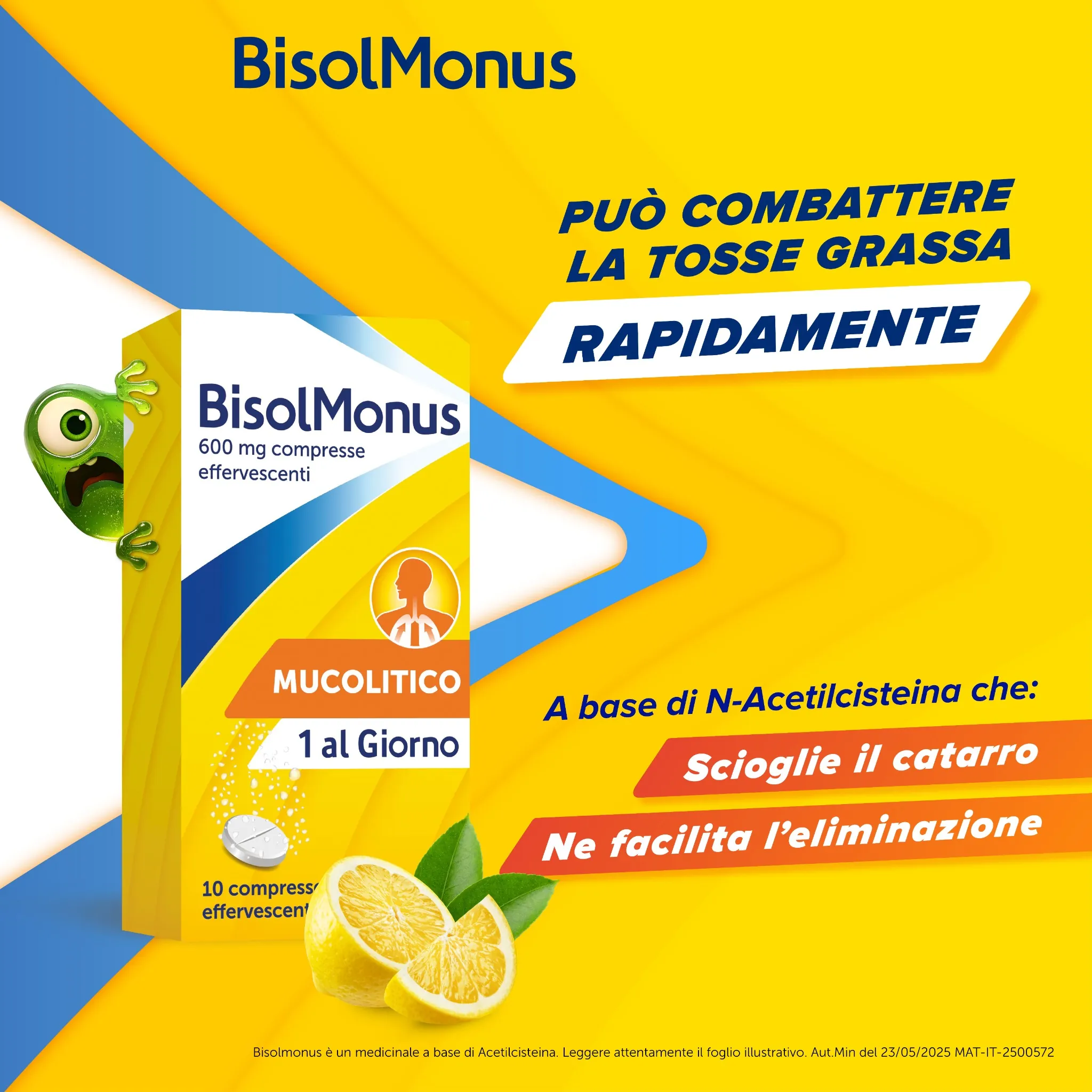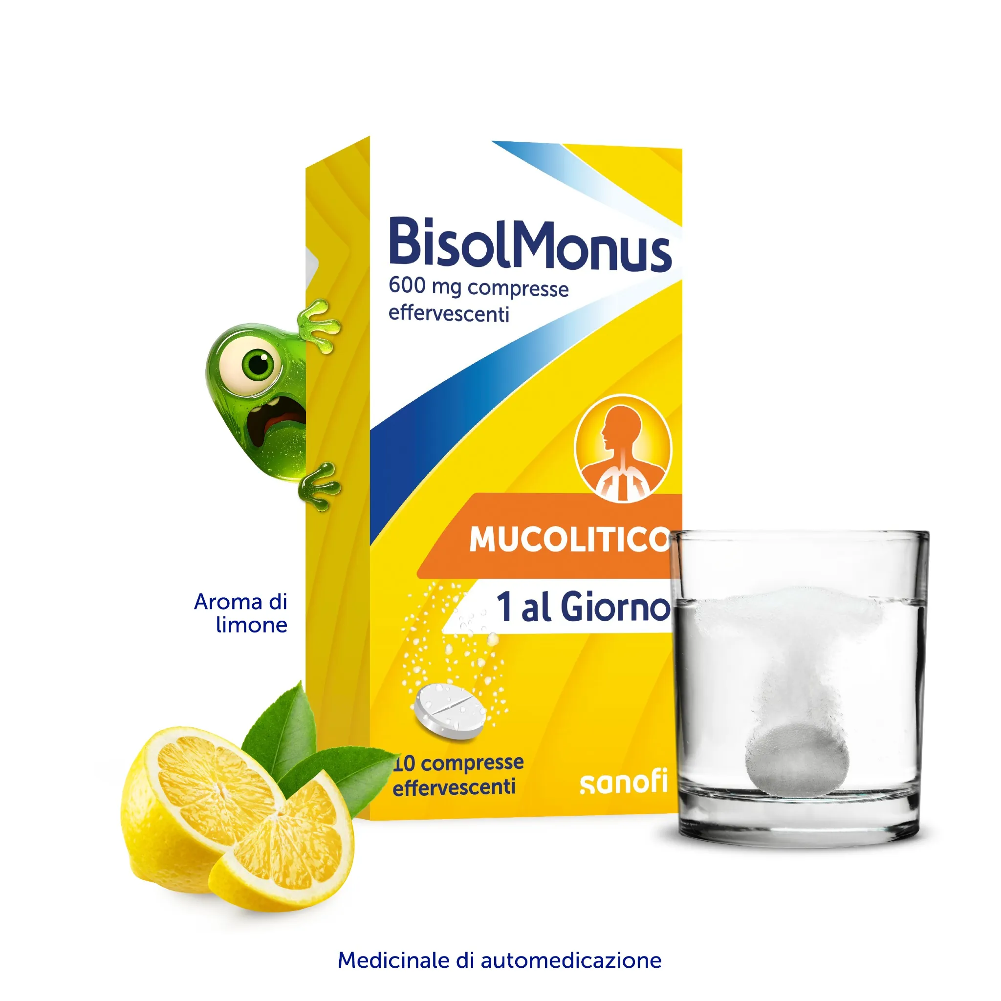 Bisolmonus è un pratico rimedio contro la tosse grassa, disponibile in una confezione di 10 compresse effervescenti al piacevole aroma di limone.