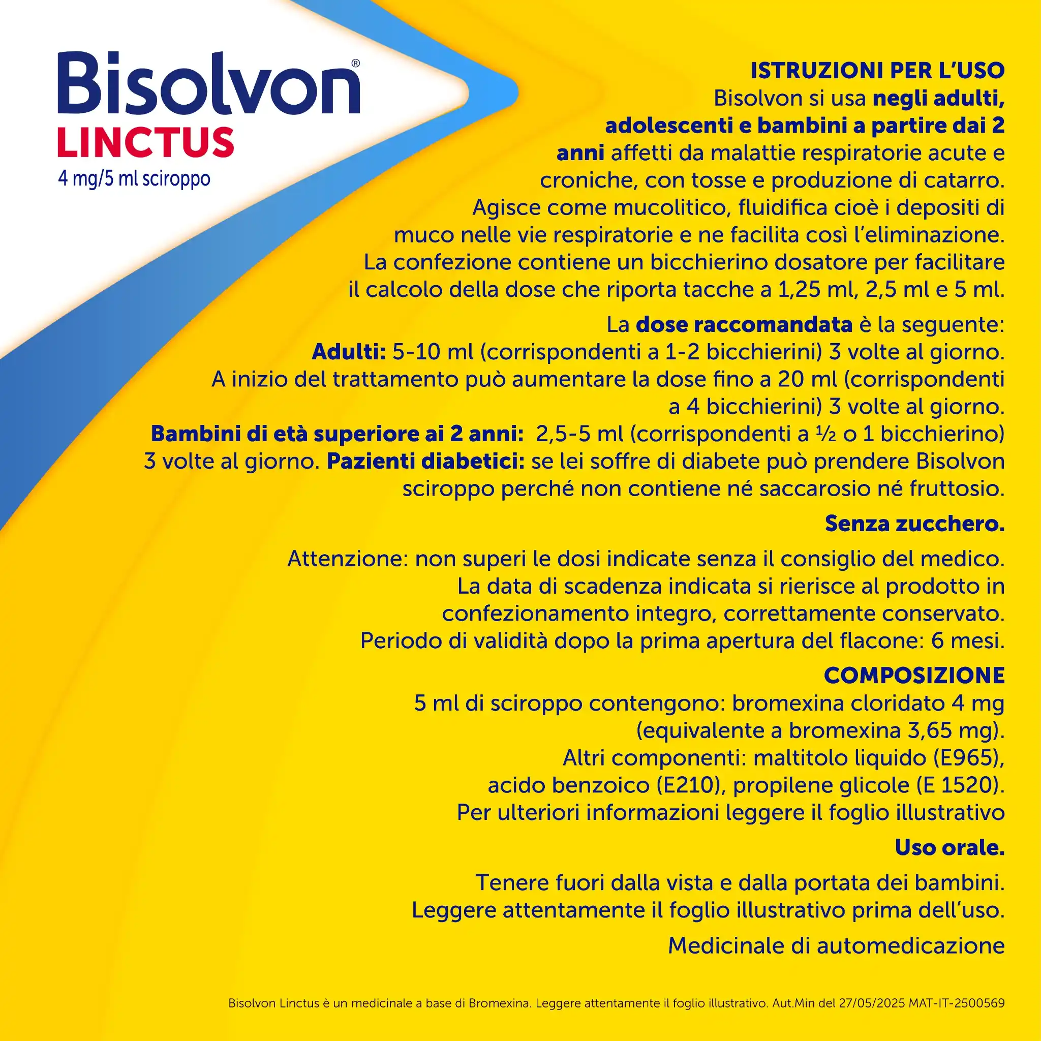 Bisolvon® Linctus sciroppo, grazie al principio attivo Bromexina, aiuta ad eliminare il catarro rendendolo più fluido e quindi più facile da espellere.