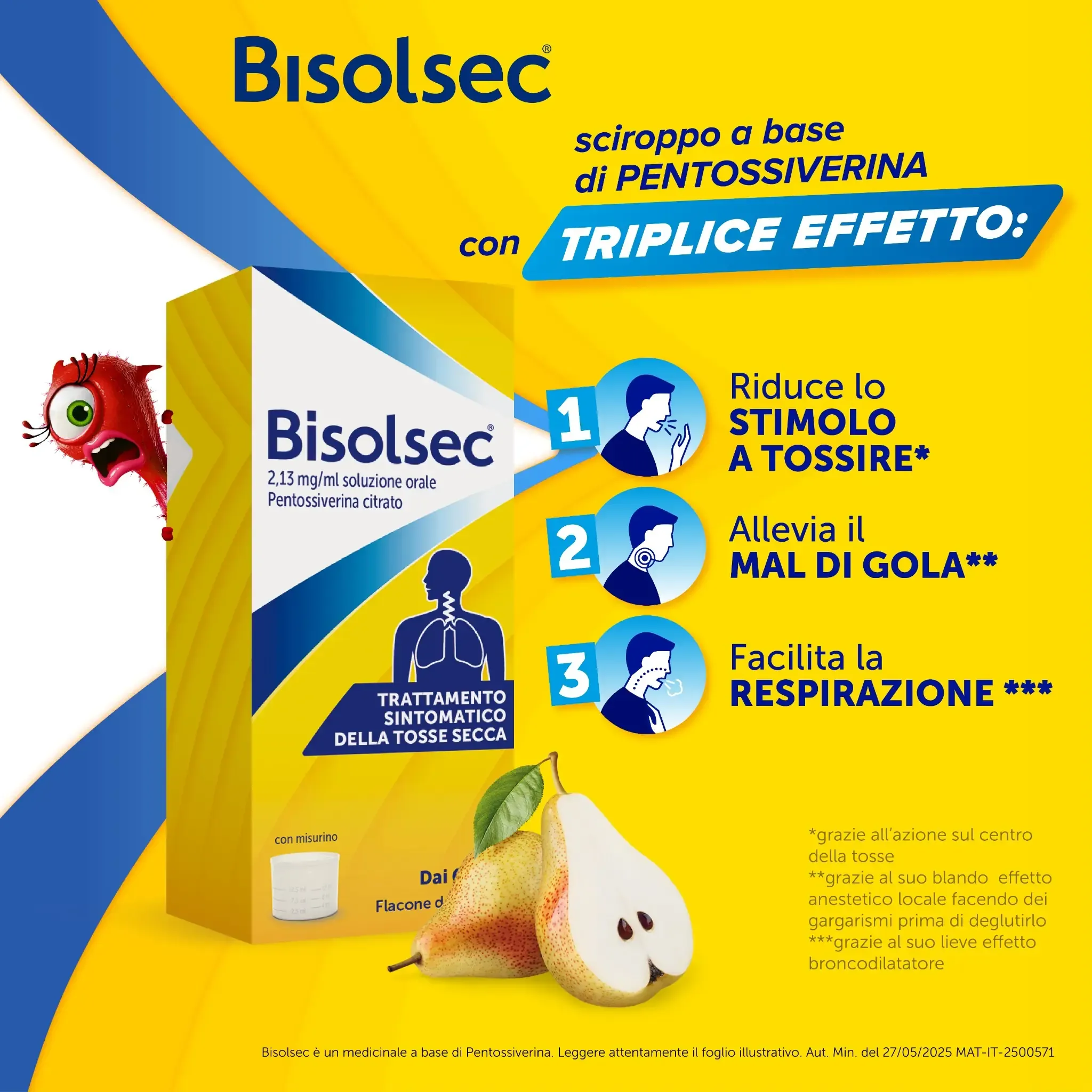 • 3 azioni: *Calma la tosse, *allevia il mal di gola, *aiuta la respirazione